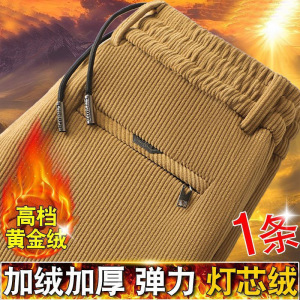 秋冬跨境外贸休闲裤加绒弹力宽松直筒中腰裤子新款灯芯绒加绒松紧