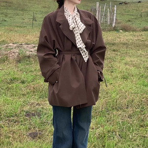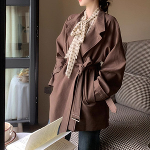 2025【諾丁山旧梦】风衣外套女秋冬韩系气质立领通勤大衣宽松慵懒