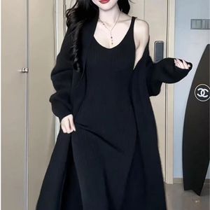 松霜绿针织显身材外套连衣裙气质女神高级毛衣长裙两件套