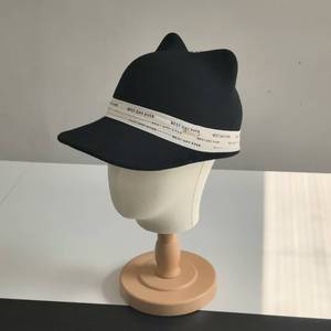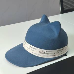 秋冬小香家女复古羊毛呢耳朵帽休闲字母三折带装饰棒球帽毡帽子