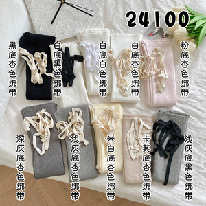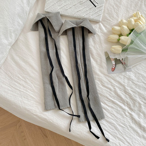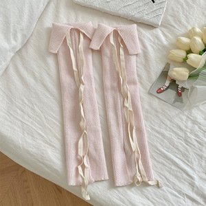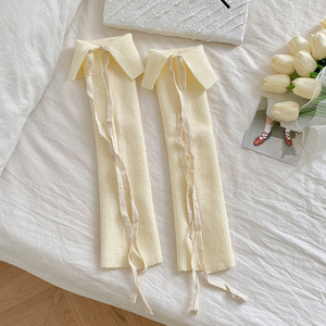芭蕾风袜套女绑带蝴蝶结针织堆堆纯色韩系开叉少女腿套长筒袜潮流