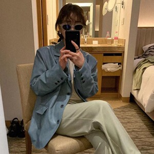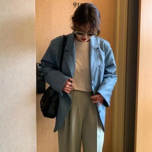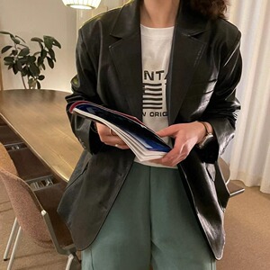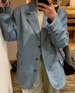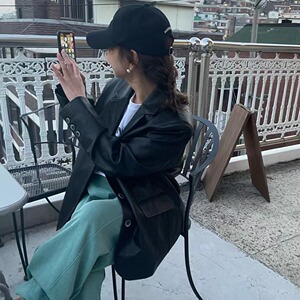 韩国2025秋季新款法式气质中性风西装领皮衣PU外套女宽松休闲上衣
