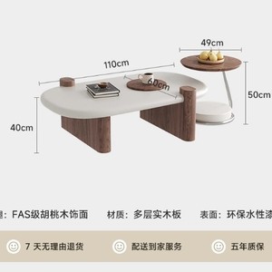 中古风实木茶几高级感客厅家用现代简约2025新款椭圆形设计师茶桌