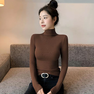 暗灰色高领螺纹打底衫女内搭早春新款修身纯色百搭洋气长袖女t恤