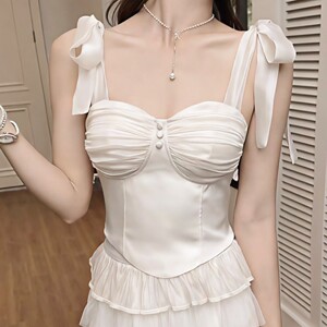 夏季新款绑带吊带背心女带胸垫固定杯气质甜美重工钉珠美背上衣女