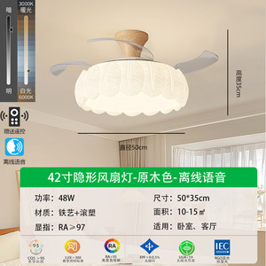 现代简约卧室风扇灯原木风羽毛餐厅吸顶灯奶油隐形变频电风扇吊灯