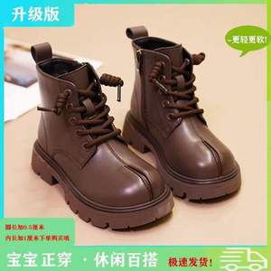 儿童马丁靴2025四季新款软皮二棉加绒中大童百搭软底四季男童短靴