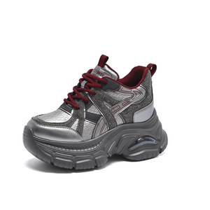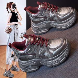 女鞋2025增高厚底秋季皮面鞋女休闲鞋新款运动休闲老爹运动鞋耐脏
