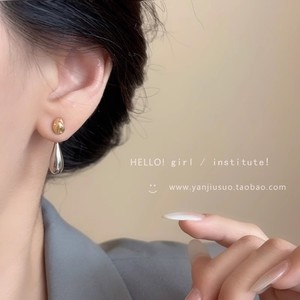 极简撞色水滴耳环女轻奢高级感复古耳钉独特后挂式气质耳坠耳饰品