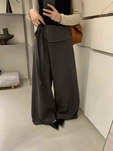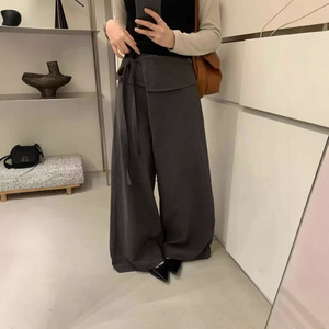 韩系高级感系带屁帘阔腿裤女2025秋季宽松高腰垂感休闲直筒拖地裤