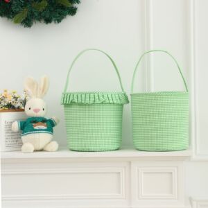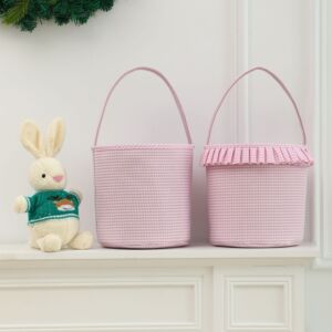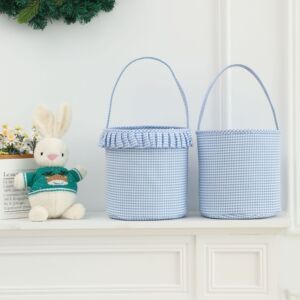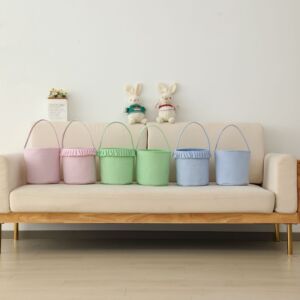 新款复活节礼物篮可爱泡泡纱花边糖果收纳桶布艺手提款派对圣诞