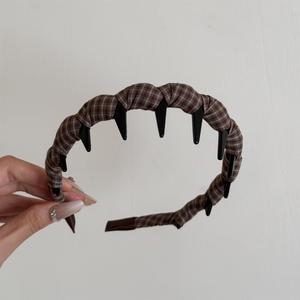 复古气质格纹布艺发箍女2025新款简约带齿防滑洗脸发卡高颅顶头箍