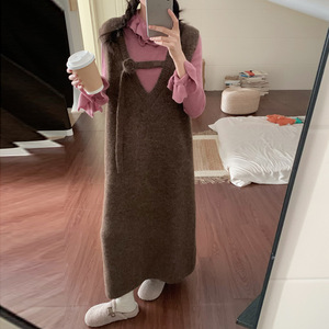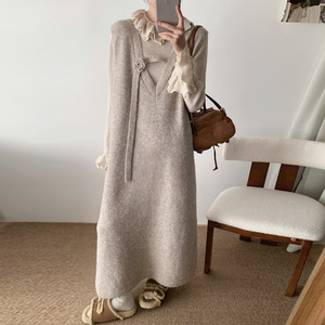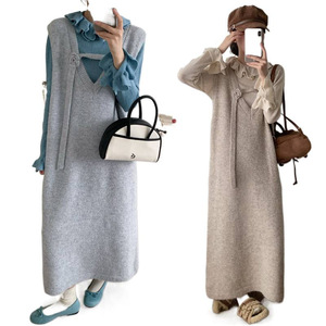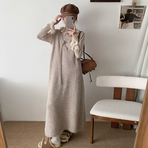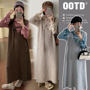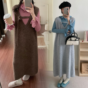 现货2025秋冬新款孕妇裙韩版毛衣背心裙+花边打底孕妇套装