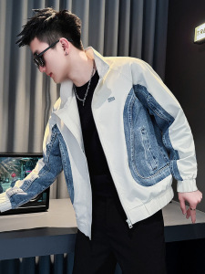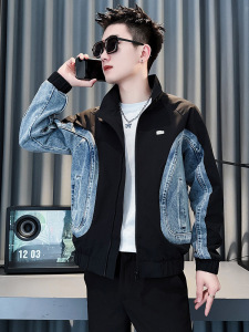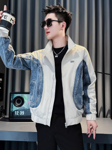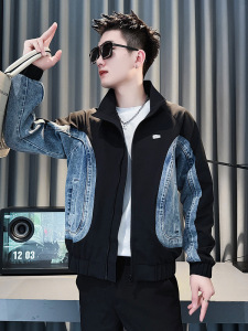 潮牌痞帅外套男款春季潮流牛仔拼接夹克2025新款休闲男装秋装上衣