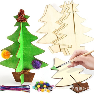 木质白胚立体圣诞树桌面摆件 儿童手工木板diy材料绘画涂鸦木片