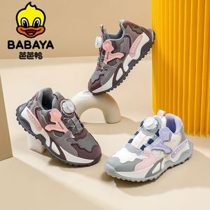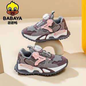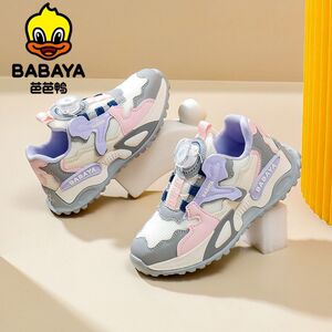 芭芭鸭童鞋2025新款秋季儿童运动鞋女孩鞋子跑步鞋女童休闲纽扣鞋