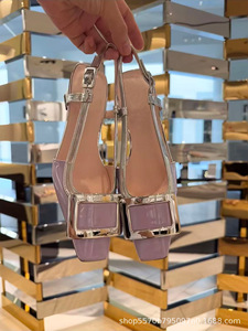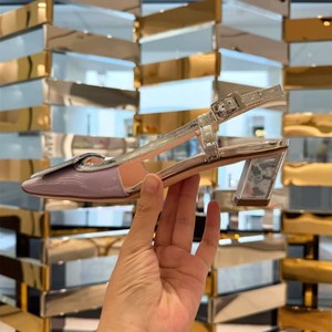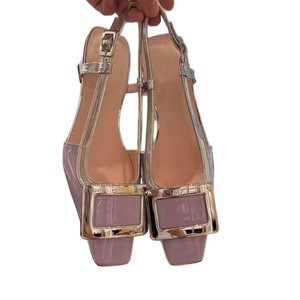 RV同款方扣凉鞋女2025春夏季浅口方跟气质百搭包头高跟鞋橡胶鞋底