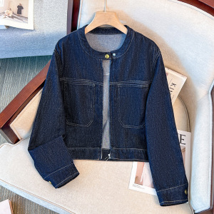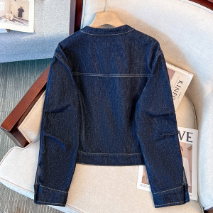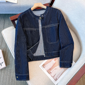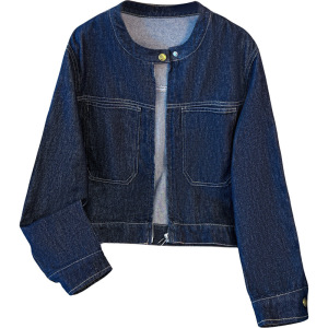 美式复古牛仔短外套女士2025新款春季休闲百搭深蓝色翻领修身上衣