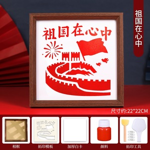 国庆节雕版拓印相框画手工diy材料包爱国主题非遗工具套装模板画