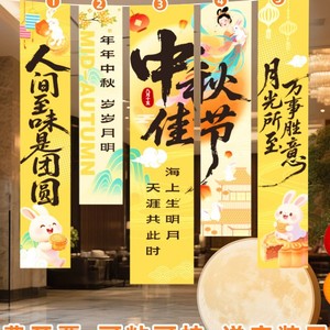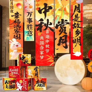 中秋国庆氛围布置装饰场景灯笼门店铺活动主题拍照道具条幅挂布条