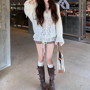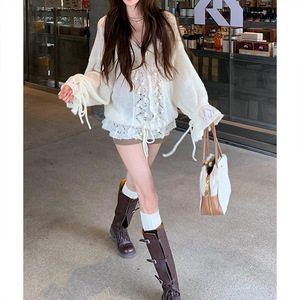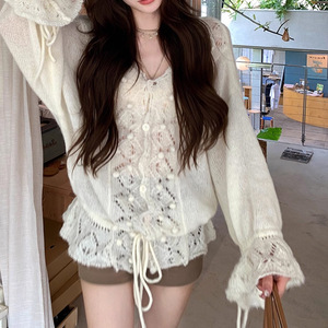云朵绵柔 牛乳卷 氛围感镂空针织上衣套装高腰卡其短裤套装温柔风