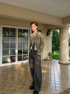 EME 秋季复古短宽夹克纯色老钱风设计感boxy立领外套上衣男女