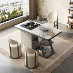 轻奢岩板阳台茶桌椅组合现代小户型茶台客厅家用小茶几烧水壶一体