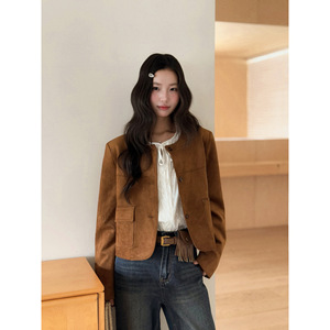 【秋日街角】歌铭仿麂皮绒短款外套女秋季新款韩系通勤风衣N554C