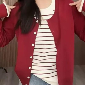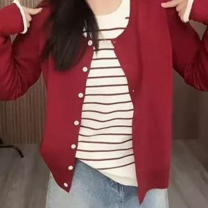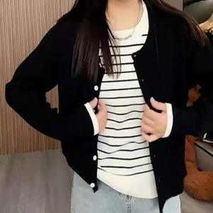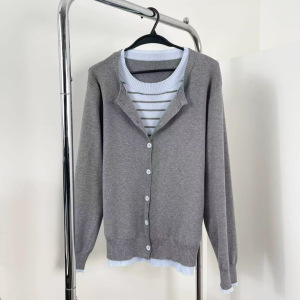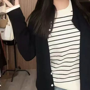 2025秋季大码新款刺绣假两件针织衫女装显瘦长袖上衣