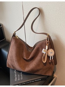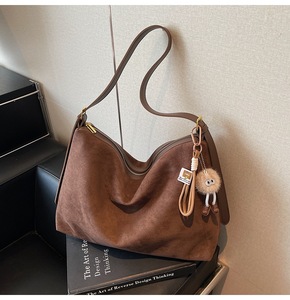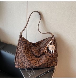 跨境麂皮绒包包女大容量2025新款秋冬季豹纹磨砂斜挎包通勤托特包