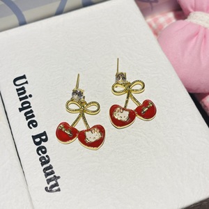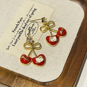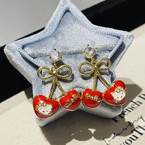 樱桃kt猫耳环可爱卡哇伊小众设计气质耳钉简约个性百搭S925银针