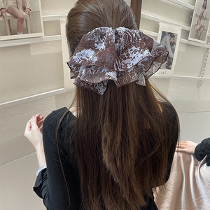 新款头饰法式水墨花碎花大肠发圈高级感晕染头花马尾半扎发圈发饰