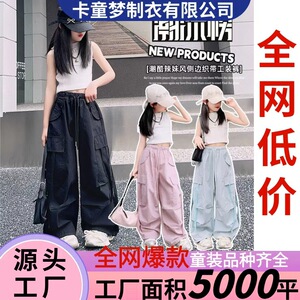 女童夏装工装休闲裤子甜酷炸街女孩时尚宽松阔腿中大童夏季长裤子