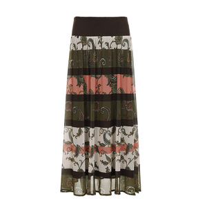 民族复古风印花网纱拼接裙设计感文艺气质长款花边大摆裙欧美女装