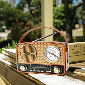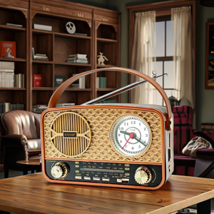 工厂跨境复古钟表全波段收音机应急便携多功能蓝牙插卡播放器2440