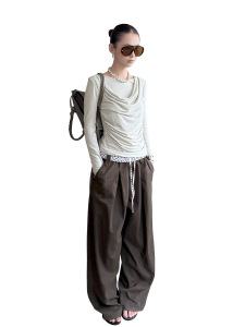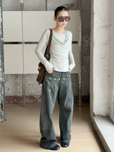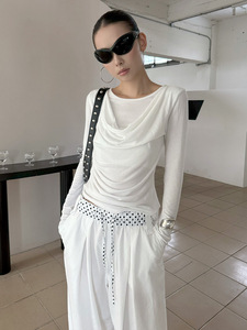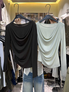 MMFISH时髦街头休闲假两件荡领纯色长袖T千层叠荡打底上衣25T500