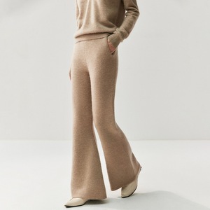 软糯亲肤山羊绒微喇裤女高腰加厚弹力2025秋冬新款休闲针织喇叭裤