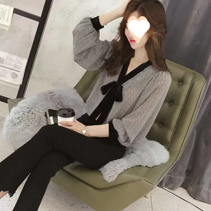 新款蝴蝶结衬衣大码女装遮肉显瘦长袖衬衫春秋宽松薄款打底衫上衣
