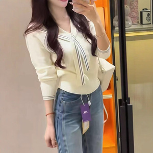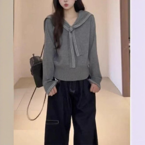韩系chic海军领披肩长袖针织衫女秋季2025新款高级感内搭毛衣上衣