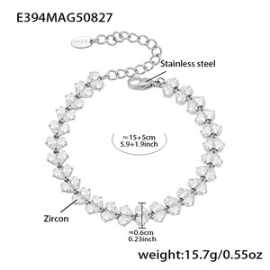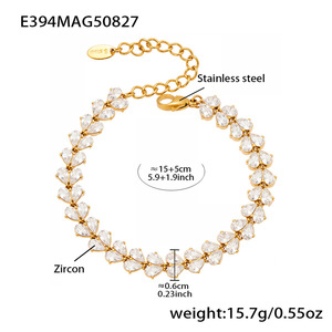 方糖气质时尚空心桃心钛钢镀18K金不掉色镶钻爱心拼接手链手饰女