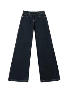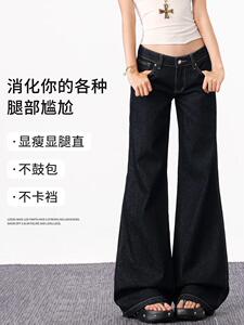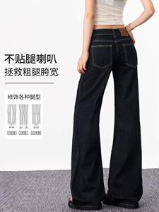 原色低腰微喇牛仔裤女秋薄款2025年深蓝色宽松显瘦不贴腿喇叭裤子