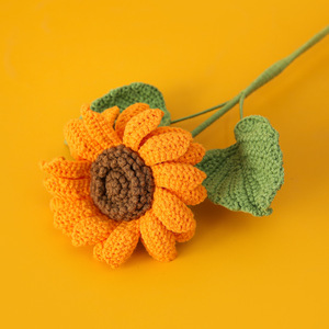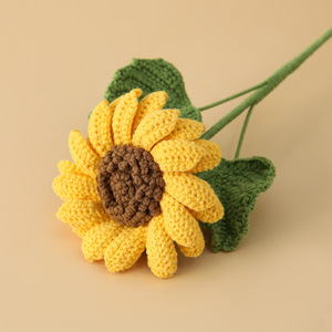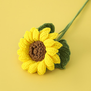 手工编织雪菲线泰迪向日葵花枝仿真花创意花束太阳花成品厂家现货