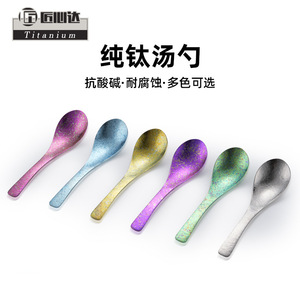 纯钛勺子汤勺家用户外防滑钛合金调羹汤勺高温着色健康钛勺子