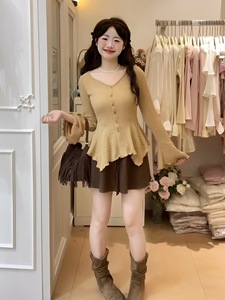法式早秋氛围穿搭掐腰喇叭袖上衣女2025年秋季针织小衫设计感小众