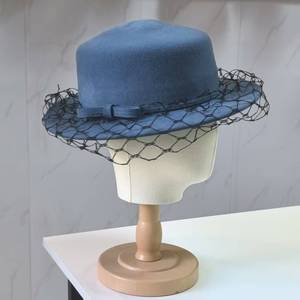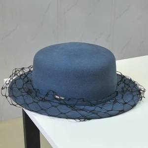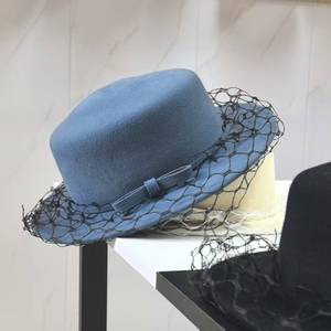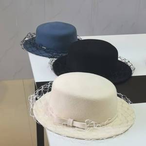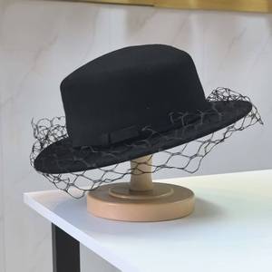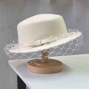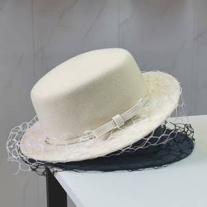 秋冬日本款网纱蝴蝶结休闲复古日搭羊毛呢平顶平沿时装毡帽子
