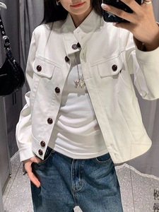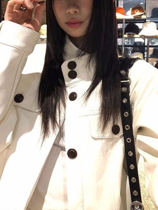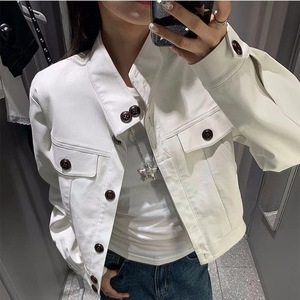 白色休闲百搭显瘦皮衣立领春秋季新款小众设计女款外套短外套