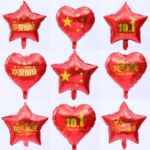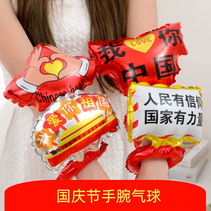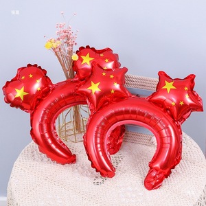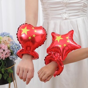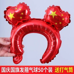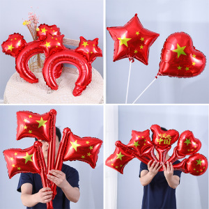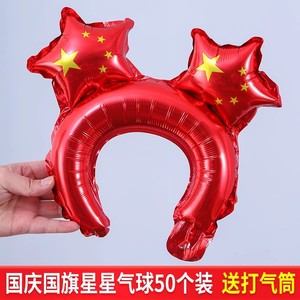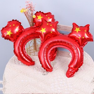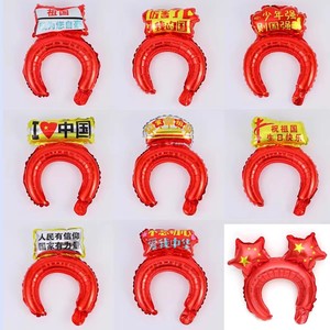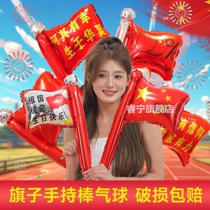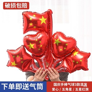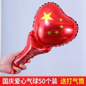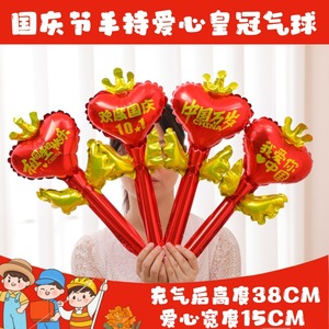 国庆节10.1爱心形铝膜手持加油棒手摇旗气球商场店铺活动头饰发箍