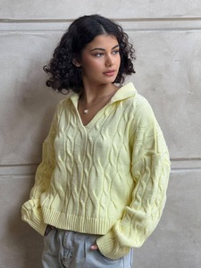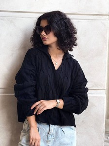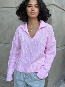 外贸拉夫高级感设计纯色上衣女秋季外穿长袖欧美辣妹翻领针织上衣