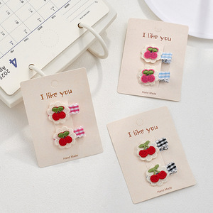 甜美儿童刺绣水果草莓格子发夹小女孩侧边刘海夹不伤发全包夹发卡