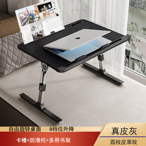 皮革桌床上桌折叠升降旋转桌飘窗膝上桌宿舍卧室学习现货桌升降款